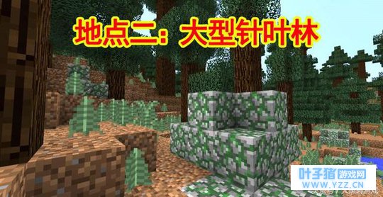大型针叶林也是存在苔石的地方,在这里你能看到大量星罗棋布分散在各处的苔石,而且是直接裸露的!苔石还会自然形成一堆堆的形状,很多人初次见到可能还以为是遇到了很多地牢。值得一说的是大型针叶林除了苔石,还存在一种很特别的方块“灰化土”,有兴趣的玩家可以去研究下。