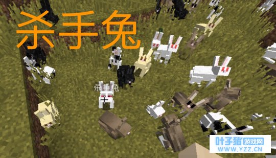 第三,杀手兔。这是兔子的罕见变种,也是一种稀有的攻击性生物,它对玩家是时刻保持攻击性的,即使是在和平模式中,它依然会试图攻击玩家。杀手兔绝对是一种危险生物,它血红色的双眼,加上超快的速度,曾经是不少玩家的噩梦。杀手兔的天敌就是狼,毕竟杀手兔再强终究是兔子。在1.8预览版本后不能再自然生成。