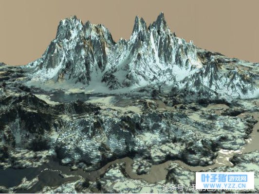 河流是人类文明的发祥地,然而雪山就是河流的发祥地,虽然河水的源头可能只有一桶水的水量。这位作者专门做出了高低差异的地形,让河流成了流动的效果。
