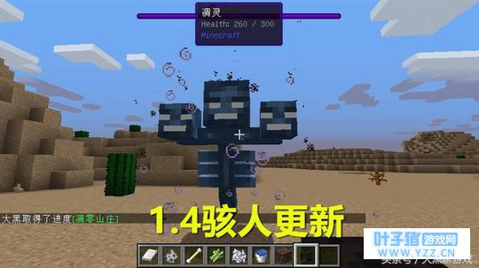 在随后的1.1/1.2/1.3等版本中,Minecraft陆续对1.0版本进行改进和添加。 而在1.4版本中Minecraft进行了另一项重大更新,那就是为游戏中添加了“骇人元素”!添加了大名鼎鼎的BOSS凋灵,凋零骷髅等。并且对铁砧、信标与命令方块等的特性进行了重大更新。另外僵尸会感染村民的特性也是从那时开始的。