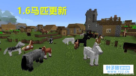 2013年7月1日Minecraft发布了重大更新版本-1.6版本!这个版本也被称之为“马匹更新”!在这个版本中为马、栓绳等添加了许多特性。马在那时已有三种可驯服的变种(马、驴和骡子),并且它们都能够被繁殖和乘骑!并且该版本还添加了干草块喂马,鞍来骑马,马铠用于保护马等特性和道具!