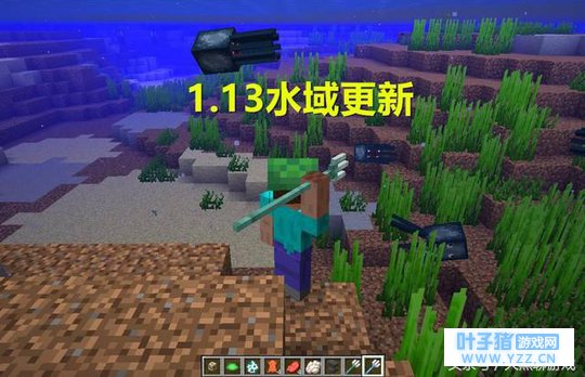 1.13版本对全游戏进行了极其重大的更新-水域更新!在水中添加了包括海草,海带,珊瑚丛在内的20多种植物和方块,并且还有海龟,溺尸、海豚、幻翼以及多种实体鱼!(注意它们都是实体),另外还有数种新结构和以及,包括沉船、冰山、水下遗迹、水下洞穴和峡谷等等等等,数不胜数!