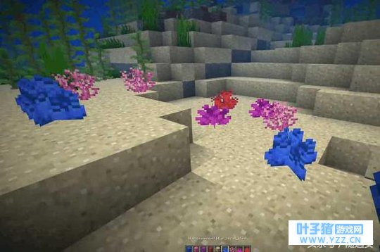 而对于海底的植物方面来说,除了海草之外,还增加了新的水下植物,珊瑚丛,而且还有新的材质,珊瑚草方块! 以上就是在海底增加的一些内容,当然,接下来还要给大家说一下海平面上面增加的内容。 第四件、新的敌对生物!