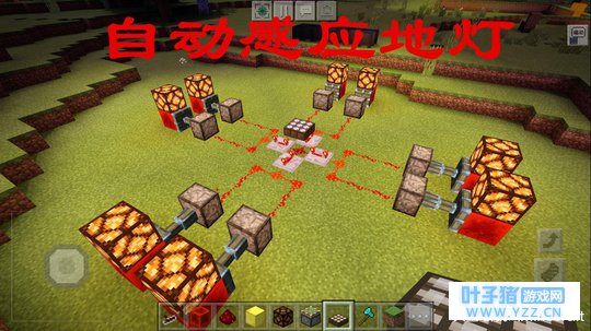 《我的世界》自动信标光束灯,更多是作为装饰用途。夜晚,月光感应器为“粘性活塞”充能;白天,月光感应器充能消失,粘性活塞收回,底座方块变得不完整,则信标光束消失。自动信标光束灯是Minecraft最炫的一款灯哦。 9、自动感应地灯