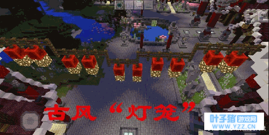 在《我的世界》中有非常多的“古风灯笼”,这是来来自于城春飞花中的“灯笼”。实际上Minecraft中传统的灯笼有两种做法,一种是图片这样的“红石块+萤石”,还有一种是“红石块+萤石+红石块”,萤石放在两个红石的中间。如果你觉得单调,可以在最下方放上铁栅栏或者是末地烛,甚至玻璃板也是可以的。 11、大型古风灯饰