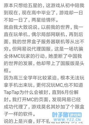 但是从网易接管之后,我的世界中国正版确实实行了免费下载。但是我的世界的评论区确不是这样的 评论1: