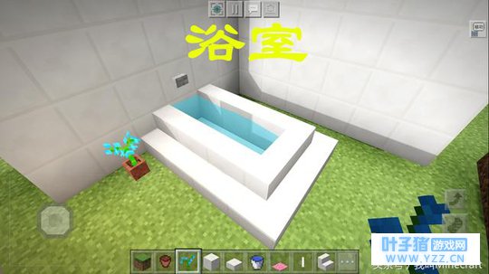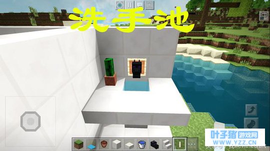 《我的世界》“洗手池”的做法想了很久,水龙头的选用是个问题。后来就想出了这一个“高成本”的洗手池。材料是:龙首、展示框、石英半砖。旁边那盆花是“仙人掌”。“龙首”的获取方法是在末地之中,找到一座末影船,在末影船的船首之处就是龙首。记住打落龙首的时候,不要掉进虚空就行。所以这样的洗手池,你敢尝试做一个么? 六、“极简风”——浴室