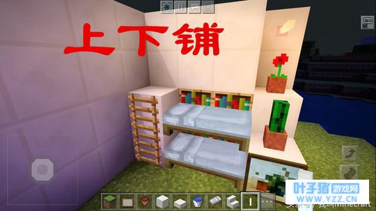 这是本人最喜欢的一张床,在《我的世界》中屋子里总是摆着一张床,实在是太过于寂寞了。Minecraft的单机,本质就是“孤独”的。所以不要再让自己的床给这份存档再加一笔“孤独”。要么你放两张床,要么就做一个这样的非常温馨的“上下铺”吧。上下铺的材料就不用多说了,都是常见的材料。如果你喜欢的话,赶紧在自己的Minecraft存档也放点这样的家具吧。 本文来源:今日头条,作者:我叫Minecraft,转载请注明来源。 |