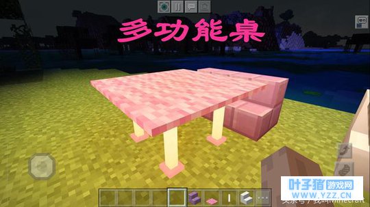 既然是“极简风”的家具,那么材料必然是没多么复杂的。就要做到一眼看上去就知道是如何做成的。所以对于《我的世界》桌子的搭配,为你打造四款不同的风格!我们从右向左看吧,下方的材料分别是:粉色玻璃板、末地烛、木制栅栏、铁栅栏。而上方的方块都是“羊毛毯”。其中最右边的两款,“末地烛和玻璃板”优先推荐哦。尤其是末地烛的桌子,既美观,又可以用来照明。是非常实用的一款家具哦! 二、“极简风”——多功能桌
