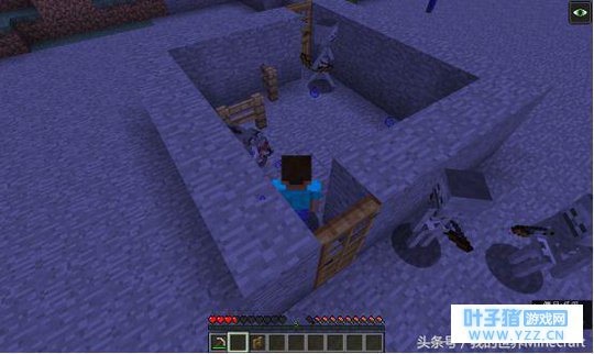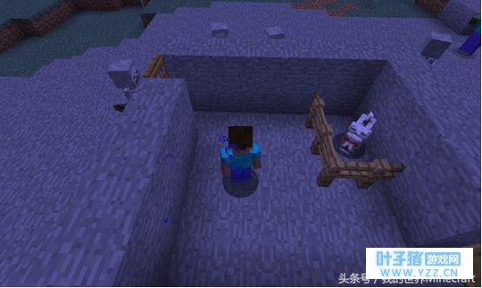 而在这个时候史蒂夫就可以安安心心地探出铁镐把僵尸脚下的草方块挖掉,让他们掉下挖好的陷阱中。 流沙陷阱