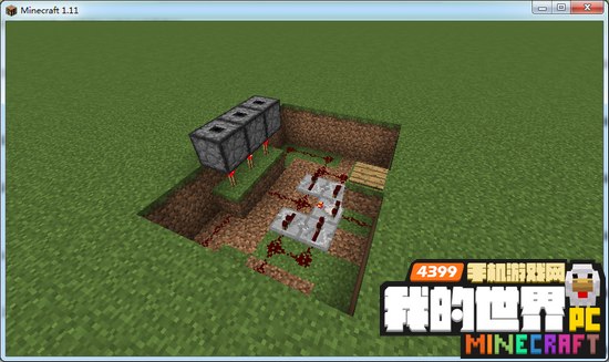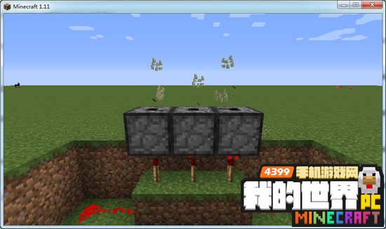 3.让我们来试验一下:踩在压力板上,可以看到红石火把在不断地闪烁,上方的投掷器不断向上喷出种子,这样就算主体已经测试没问题啦。