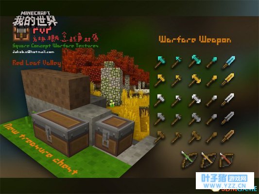 方块概念-战争材质 “方块概念-战争材质”是方块概念衍生作品,其中加入了许多更适合战斗的元素。全新的武器装备及相关物品能让冒险家们轻松辨别各式装备。更加开阔的视野,便于玩家随时观察敌人的一举一动。这款简洁舒适的方块概念材质包一定会让热爱战斗的玩家眼前一亮。挥舞起手中的武器,还能与对手再战三百回合!