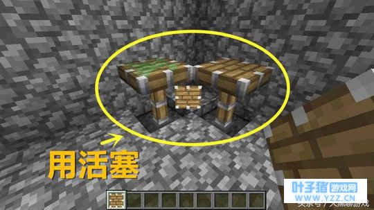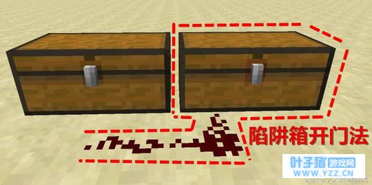 很多玩家可能没想到,陷阱箱其实也是能用来开门。这是因为陷阱箱在开启时也会发出红石信号,而门只要接收到信号就会打开,所以它自然也能做到。用它来做房间的“秘门”很有趣哦。 方法11.用活塞推掉