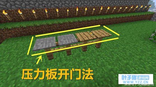 压力板当然也能用来开门,将它放置在门旁边,当被玩家踩到时门就会自动打开。但用这个方法开门还是有风险的,除了玩家,怪物和生物在踩下后同样也会触发开门效果,这门对怪物相当于不设防... 方法5.用按钮