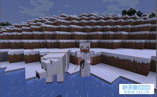 北极熊 北极熊在雪地场景较为常见,这是一种极为护犊子的生物,假若你碰上小北极熊和成年北极熊在一起时,最好还是绕开,不然成年的北极熊会攻击你,进而附近所有成年的北极熊都会攻击你。
