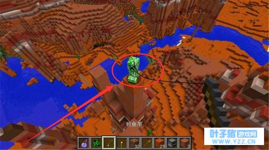 钓鱼竿作用之四:钩住其他的物体 这个作用就比较好玩了,可以说你想钩什么就钩什么。比如说矿车,盔甲架什么的。更好玩的是,有些东西被钩到了,还能拖动它们。比如你可以钩其他的玩家或者生物。但是对他们是没有伤害的哦。