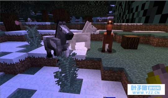 4. 马 相比其他可以被驯服的生物,马的作用就大了许多,玩家骑乘他可以让玩家的速度增加好几倍。我们可以用苹果、金萝卜、金苹果等物品喂食它,直到喂出心形,然后我们可以骑在它的身上,再给它佩戴马鞍就可以操纵它的方向了。(PS:驴和骡子的喂养方法和马一样,它们可以佩戴箱子)