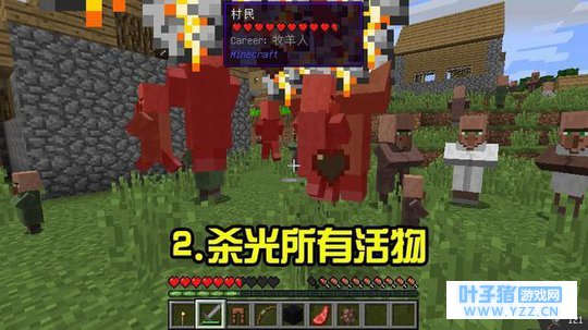 树木在《我的世界》中是最重要的一种资源,要致富先撸树这话是没错的。但就有玩家丧心病狂的把所有能看到的森林都统统一把火烧光!看到这样的场景很是心疼,这是得浪费多少木头资源啊...话说回来,用这个方式开辟空间还是不错的,但前提是一定要能控制的了火势啊! 2.杀光所有活物