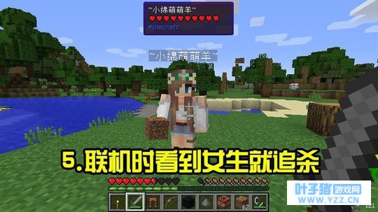 很多玩家都爱玩TNT,那你有没有想过把整个世界变成TNT的世界呢,而这个疯狂的想法完全可以通过指令或模组来实现。而当实现了满世界都变成TNT后,如果再用打火石点一下...那画面太美简直不敢想象,当然更大的可能是还没看到结果,电脑就已支撑不住散发出焦糊味了。 5.联机时见到女生就追杀