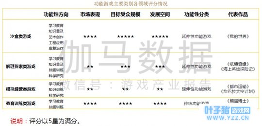 一、功能游戏主要类别 一般来说,大部分玩法类型游戏都具备成为功能游戏的潜力。其中,传统功能游戏中的教育训练类,以及延伸性功能游戏类型中的沙盒类、解谜探索类、模拟经营类等游戏类型凭借各自优势最值得关注。这些游戏类型的优势主要集中在游戏性、功能方向、市场表现、目标受众规模、发展空间等方面。
