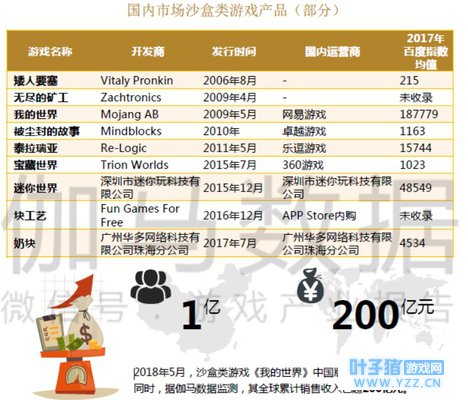 二、沙盒类游戏:头部产品全球累计收入超200亿元,《我的世界》已在功能性方向展开尝试。 沙盒类游戏是指以“创造”为核心,游戏通常没有明显的目标,玩家可以扮演一位角色,利用游戏内的资源生存和创造,可以自由改变游戏场景。由于沙盒类游戏的研发初衷多为娱乐性,此类游戏的功能游戏多属于延伸性功能游戏,覆盖功能面十分广泛,包括学习教育、知识普及、艺术创作、工程应用、康复治疗等。其在功能游戏市场的优势主要体现在: 游戏性方面,沙盒类游戏高自由度与创造性使此类游戏成为多种功能性的良好载体。例如《我的世界》正在尝试延伸游戏边界,目前已经实现步入国内外课堂。 市场表现方面,全球范围内,沙盒类游戏市场表现较好,头部产品创造了超200亿元营收。国内市场,据统计,2017年沙盒类游戏的市场规模达到了10亿元以上。 目标受众规模方面,从沙盒类游戏整体百度指数来看,此类游戏影响着大量用户,2017年百度指数日均值普遍处于较高水平,并且头部游戏《我的世界》目前仅在国内注册用户数就已超1亿。 发展空间方面,目前,沙盒类游戏在功能性上探索已经较大。考虑到沙盒类游戏本身的营收能力,以及受众等因素,沙盒类功能游戏的商业化空间仍十分广阔。
