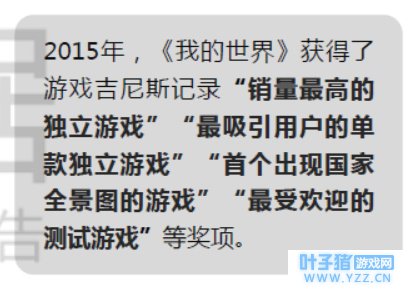 3、高趣味性 功能游戏的趣味性同样非常重要,首先,趣味性影响用户数量与用户忠诚度,用户基础决定一款功能游戏的存在意义。其次,趣味性让游戏的功能性成为可能,反之当功能游戏趣味性过低,用户因枯燥乏味而失去兴趣,功能性同样无法延续。 除游戏玩法外,《我的世界》的趣味性在两个方面足以体现。第一是在用户关注方面,2017年网络游戏百度指数日均值排名中,《我的世界》久居高位仅次于《英雄联盟》。第二,《我的世界》获得数项大奖,也令其趣味性得到肯定。