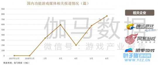 二、功能游戏兴起 2018年初,功能游戏成为市场热点,媒体关注度大幅上升,从1月份起资讯报道数量暴增。主要是因为: 第一,客观上,功能游戏发展需求明显,主要体现在市场、政策监管、品牌等方面; 第二,主观上,游戏企业也对布局功能游戏具有较强意愿,包括腾讯、网易纷纷布局,推动了功能游戏的火爆应用。