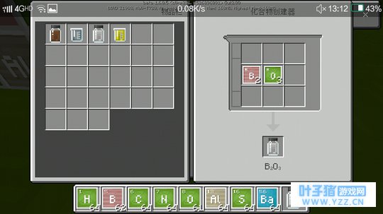 118种现实元素+一种Mojang And Bug自创的元素 本期讲解的是五种化合物的合成方法,它们分别是: ①氧化铝 ②氨(l) ③硫酸钡 ④苯宝宝 ⑤三氧化硼 这是本期要用到的化学元素和仪器