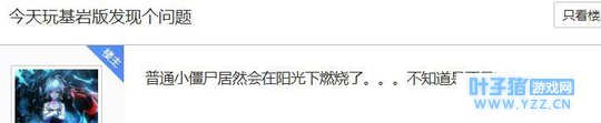 老玩家都知道在游戏内僵尸遇见阳光就会自燃,只有小僵尸不会燃烧还跑得很快,如果想养僵尸不让它燃烧就需要为它们建造避难屋。可最近有位玩家就碰见了会自燃的小僵尸,他表示自己也没用火烧它们怎么它们就自己燃起来了,还有僵尸村民也是这样,搞得他一脸懵逼还怀疑自己是不是又遇见BUG了。