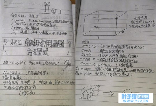 但是这位00后玩家,却用笔记本写了一本厚厚的编程指令笔记,不得不说真的敬业。而且从这本笔记来看,该玩家并不是胡写一通,不管是字迹还是条理都十分清楚,相信很多《我的世界》的老玩家都没有这么敬业吧,跟他同一个年龄的孩子,估计现在玩这游戏也就是打打苦力怕,根本不知道这些指令是干什么用的。