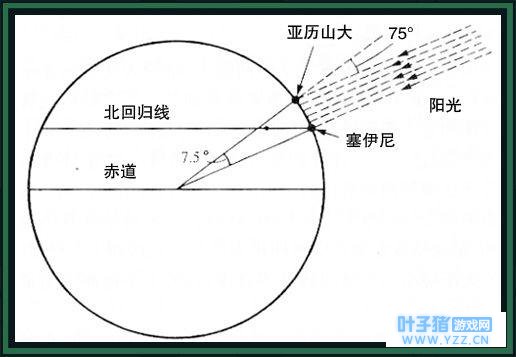 古埃及有一现名为阿斯旺的小镇,在这里,夏日正午的太阳悬在头顶,物体没有影子,阳光可以直射入深水井中,而公元前3世纪亚历山大图书馆的馆长埃拉托色尼意识到这一信息可以帮助他估计地球的周长。