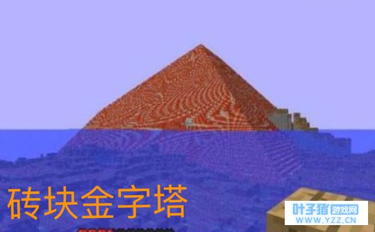 第二处,砖块金字塔。这种古老景观和沙漠金字塔看起来有些类似,只不过它外表是由红石砖块构成,看起来更加的壮观美丽。这种金字塔是天然生成的,而且内部是全实心结构,所以不用惦记着里面有什么宝藏。而且这种金字塔有一个奇怪的特性,就是当你挖掘它底部的时候,永远都是泥土和石块,这意味着它们会无限地生成,所以想让它悬空是不可能的。这种金字塔一般生成在离玩家很远的地方,但是最后还是被移除了,只因为它的高度不合理。