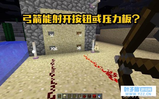 这个传言一样半真半假!首先要肯定的是,弓箭确实能射开按钮或者压力板,这个正确!但是,只限于木质,比如木质按钮、木质压力板,如果是石质的就无效,怎么设都没用的!从图上就能很明显的看到,木质按钮的一方红石已被激活,而反观同样被箭矢射击的石质按钮,红石则毫无反应感应。