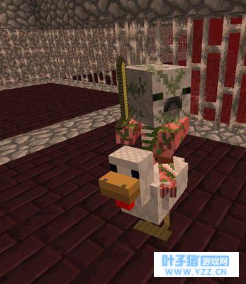 小黑,跑地比较快。为什么叫凋零骷髅呢?因为,他的大宝剑一旦伤到你,就会有凋零状态;不断掉血,心也是黑的;就好像受了诅咒之剑的攻击,被诅咒掉血一样!小黑的一般在地狱要塞中,免疫火与岩浆的伤害。击杀后会掉落煤炭、骨头、石剑和凋零骷髅头。最后的凋零骷髅头可是宝贝。凋零骷髅头可以和灵魂沙合成凋零骷髅。 危险指数:★★★★★ 速度快,伤害高,还有诅咒大宝剑?还不跑! 六、鸡骑士