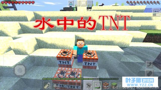 TNT并非是重力方块,因为你可以随意将它浮空放置。但是当你点燃TNT时,TNT会像类似《我的世界》铁砧这样的重力方块,自由下落。如果以方块计算,TNT从被点燃下落开始计算,大约经过72个方块,TNT会执行爆炸。 4、不科学的右手《我的世界》能点燃TNT的有红石电源元件、火、岩浆等等方块。但你不知道的是:在早期的Minecraft版本中,史蒂夫的拳头就能将TNT撸燃。不然怎么说史蒂夫是《我的世界》中最不科学的代表呢,尤其是史蒂夫的右手!撸天撸地撸TNT,简直太“不科学”了! 5、水中的TNT