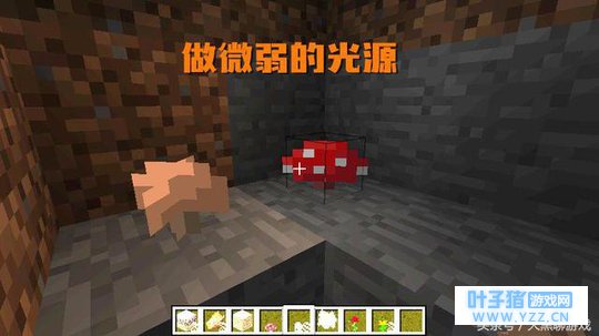 这个用法听起来天方夜谭,但事实上蘑菇确实是能发光的,虽然很弱,放光亮度仅为1!当要注意这里能发光的蘑菇仅限于“棕色蘑菇”,红色蘑菇是不会发光的,这个在图中也能略微看出来一点,如果有兴趣,你也可以亲自去夜间尝试着看看。
