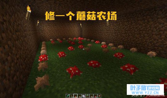 游戏中的蘑菇具有“传播”的特性,因此用它的这个特性,玩家可以修建出一个蘑菇农场!但蘑菇只能种植在阴暗且封闭的空间中,所以要修建一个封闭的屋子。但是,只要找到“菌丝”就不一样了,玩家就可以在任意处种植蘑菇,从此得到无限的蘑菇煲,吃喝不愁!