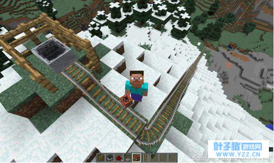 而在这趟过山车的终点等着他的绝对是一场的噩梦般的遭遇,因为在终点埋伏着的是如同山一样堆积的TNT,而在过山车落下的一瞬间就会触发石制压力板然后激活TNT。