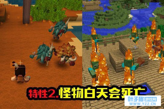 无论哪款游戏都少不了音效。而细心的玩家一定能发现,在mc中当人物踩在沙子上时,会发出类似“沙沙沙”的声音,而在迷你中,走在沙子上的音效也是一样的!当然毕竟游戏来源于现实,现实中就是这样的声音,说不定这个特性可能也只是个巧合呢? 特性2.怪物白天会死亡