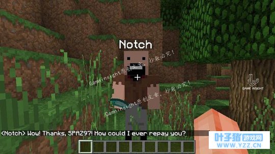在一击内造成9颗心的伤害,可以施加给任何生物(包括玩家),即使那个生物的生命值低于9颗心。 然而胖虎不具备这种能力…… 4、给你钻石!