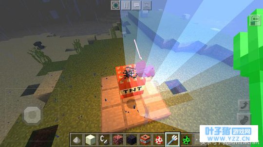 这是原版《我的世界》Minecraft中的什么怪物?你看出来了么?给点提示:或者说这是以什么角度拍的什么状态下的怪物?这开始有点难度了哦,不过相信你能依稀的从轮廓判断出这只怪物的名字。要知道百度的MC玩家们都是大神级的玩家,相信这个一样难不倒你! 五、闪电能引爆这个TNT么?