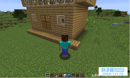 我们先来改造一下门口的台阶,不用太多,多加上一格楼梯就就好,而逼死处女座的精髓也就在于细节上的改变。