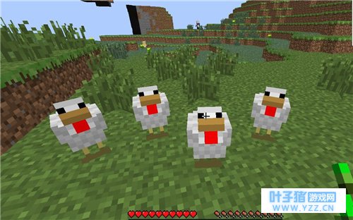 鸡 鸡不仅可以生鸡蛋,而且在死亡后还能作为鸡肉和羽毛,驯服之后还是很有价值。驯化鸡的过程还是非常的有意思,先要挖出来一个养鸡的坑,然后通过小麦来吸引鸡群,拿着小麦一直往挖坑的地方走把鸡群引到里面就是驯服,用小麦还能让鸡生出小鸡。