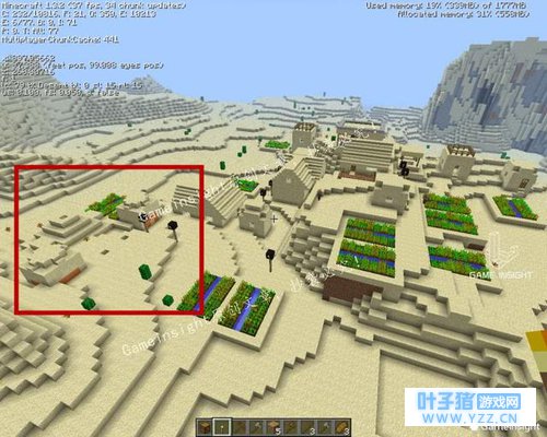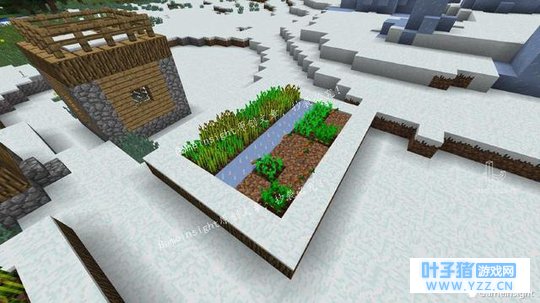 有时,生成的村庄太接近有雪的生物群系(例如下图的冰刺平原),农田里的水会结冰,作物变干死亡。 “无房村”