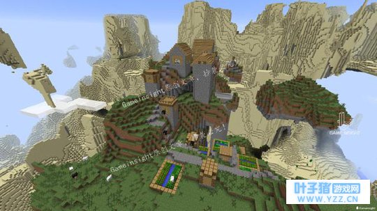放大化世界是Minecraft独特的存在,生成在放大化世界的村庄画风自然也很清流。建筑生成在山上,还有高大的圆石基座。