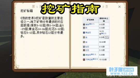 玩家接到“铁匠”的任务后,随即获得了一本挖矿指南。《我的世界》挖矿是致富的主要途径之一,地下矿物分布最多的对应层数是:煤炭5-52层;铁5-54层;金5-29层;青金石14-16层;红石5-12层;钻石5-12层。其中钻石12层分布最多。有了这样的挖矿指南,小萌新的生存起码不会迷茫,而钻石也将不是什么难寻的矿物。 显然在Minecraft游戏之中内置“挖矿指南”这个设计赢了,玩家再也不用到处去找资料,去查询究竟哪里可以挖到煤炭,哪里可以找到钻石。 操作五、Herobrine的故事