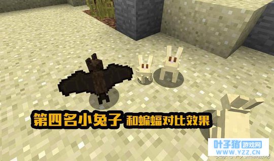 光听“蝙蝠”这两个字脑海中就自然想到了它的瘦小,在游戏中也一样。它在游戏中是体型最小的生物之一,身长不够一格,体型更是扁扁的身高根本没多少!只是当它伸展翅膀时从视觉效果上看体型要大上不少,但这也只是相对来说,就算它再显得大也要比游戏中最小的史莱姆小上不少,所以在全游戏体型最小排名中它为第五名。 第四名—小兔子