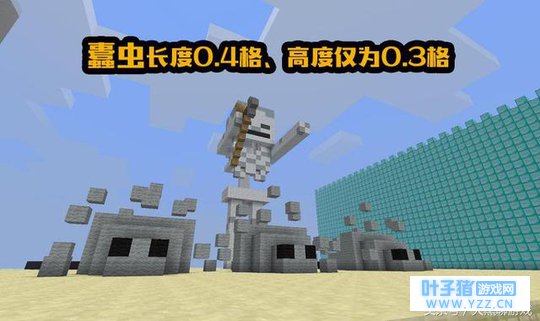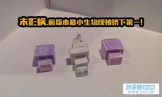 “末影螨”在前版本中是公认的全游戏最小生物!把它们放置在灵魂沙上蠹虫还有几率能够逃脱,但末影螨因为极其矮小的身材根本就挣脱不开,会被生生卡在灵魂沙上被直接闷死。从图中也能看出对比,两者的身高均为0.3格,但在长度上末影螨要小上0.1格,蠹虫明显看起来更长。但体型最小的生物现在已不是它,而是新版本中的生物,所以末影螨现在只能排在第二! 第一名—小海龟