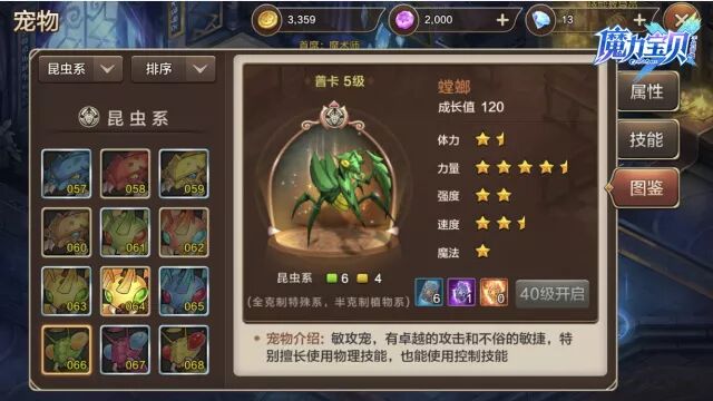 ID:轻风魅影? 作为老玩家,真心怀念整晚整晚抓宠的日子。当年的魔力小姐姐,现在的魔力小阿姨,我也来说两句吧。 我觉得首推螳螂啊, 力量型选手 , 帅攻宝 ,满攻51,属性好,风、地属性,走哪里都克,是魔系、攻系的好伙伴; 黄螳螂是 炫酷宝 ,女生都是视觉系玩家啊,金灿灿的特别漂亮,最看中的是攻击动作,那是温柔一抱啊,威风!唯一的缺点是属性太风了,遇到带点火的就影响发挥呢。