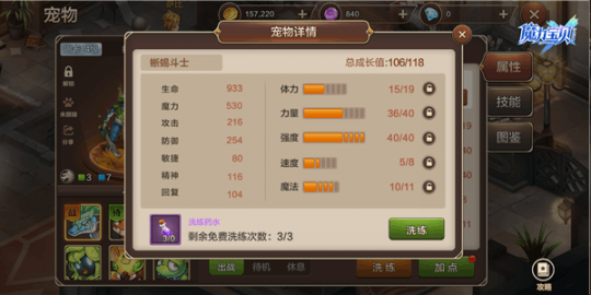 宠物是勇士的得力助手,而且战斗时勇士们真正能够进行操作的也只有宠物和角色自身,拥有一只强大的宠物对实战的帮助不言而喻。除了外表、颜值不同外,宠物们也有着自己独特的属性,这时候如何选择就成了勇士们考虑的问题。下文就给大家带来宠物属性的全面解析以及宠物与职业之间的搭配技巧。 【宠物两组属性介绍】 如下图所示,宠物的属性面板分为了生命、魔力、攻击、防御、敏捷、精神、回复以及体力、力量、强度、速度和魔法这两组属性,其中体力等一级属性影响着生命等二级属性的具体数值。左侧的二级属性是战斗的具体属性,也就是在战斗中发挥着作用的属性,比如对敌方的伤害多少就是由二级属性中的攻击(和精神)决定的。而一级属性就是用来进行宠物后培养的了,如加点、洗练等操作都是在一级属性上进行的。 【一级属性与二级属性关系】 一级属性的任何一项都影响着二级属性的三至四项具体数值,下面就给大家列出一级属性与二级属性的关系,以方便勇士们在提升宠物属性时能够明确的选择。 所有的一级属性都影响着宠物的生命和魔力,不过其中体力主要决定着宠物的回复属性、力量主要决定着宠物的攻击属性、强度主要决定着宠物的防御和回复、速度主要决定着宠物的敏捷、魔法主要决定着宠物的精神。 【属性洗练】 在第二张配图中大家可以发现右侧的五种属性是以橙色的条形作为实际数值统计的,这个条形末端的四个档位就是需要进行洗练的位置了。众所周知,每个宠物都有自己的成长值,这个成长值就是衡量宠物洗练程度的,成长值达到最高则代表洗练以达到顶级(宠物基础属性的提升上线)。上图就是宠物的洗练界面了,大家在洗练时要注意尺度切记不可强取,过分的追求极致属性。毕竟洗练石较为稀有,而且属性的洗练风险极大,当洗出不错的属性时及时停手为佳。 【宠物和职业的搭配技巧】 游戏中共有七大职业,这七大职业根据战斗时的定位可以分为:伤害型、肉盾型、以及控制辅助型。其中伤害型的弓箭手、魔法师和战斧斗士选择宠物时大家就可以比较随意了,毕竟角色本身伤害够高,不论选择纯攻击宠物还是防御宠物都可以。而骑士这个肉盾型的职业在选择宠物时,推荐大家选择纯攻击的宠物来弥补角色本身攻击不足的劣势。最后的格斗家和传教士这两个攻击和防御都比较欠缺的职业,就推荐大家选择一个属性比较均衡的宠物了。 以上就是今天的全部内容了,相信在看过本文的内容后大家都有了自己的理想型宠物,不要要注意的时,宠物不仅注重后期培养,同时也比较讲究更新换代,所以想要拥有最为合理的宠物还是要下点功夫的。 |